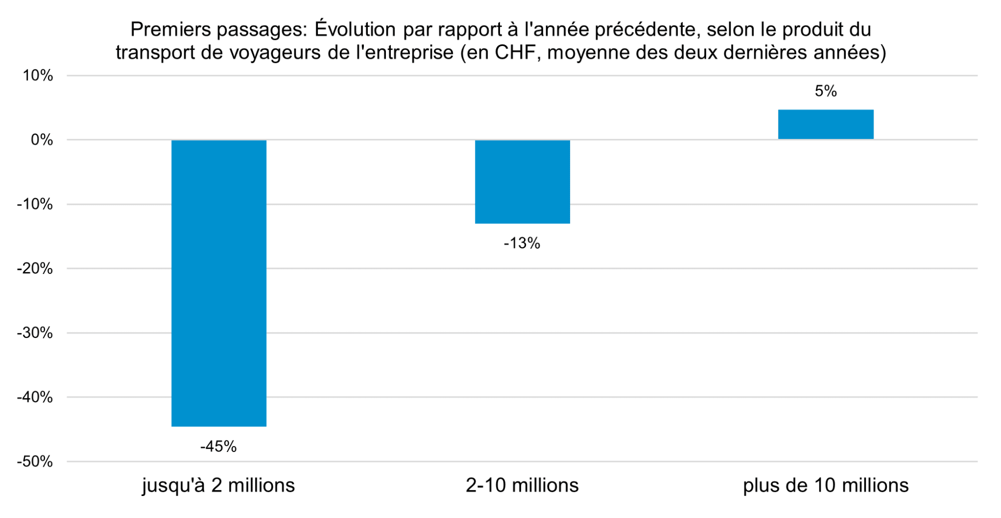 L'analyse de l'évolution du nombre de hôtes en fonction de la taille des entreprises (mesurée en termes de produits de transport) montre une image similaire : les petites entreprises, souvent situées à basse altitude, enregistrent une baisse significative du nombre de visiteurs, tandis que les grandes entreprises ont enregistré une légère augmentation de 5 % (cf. fig. 3).
